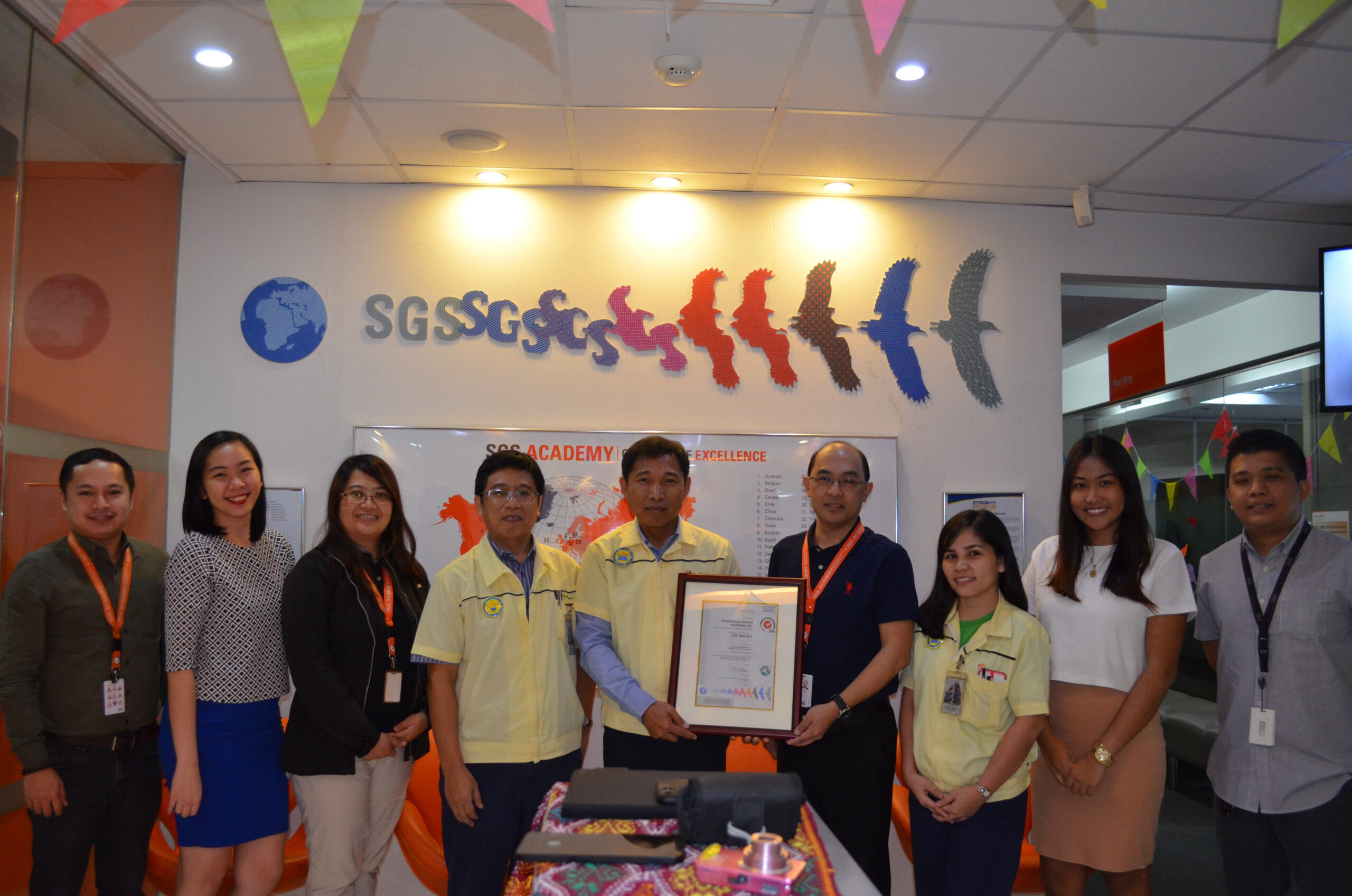 Tsukiden Electronics Philippines, Inc. President Mr. Edgardo Etac, receiving the certificate from SGS CBE-Division Manager Mr. Roger Villanueva last October 9, 2017. Tsukiden Electronics Philippines, Inc. is the first company in the Philippines to be certified by SGS in IATF 16949:2016.